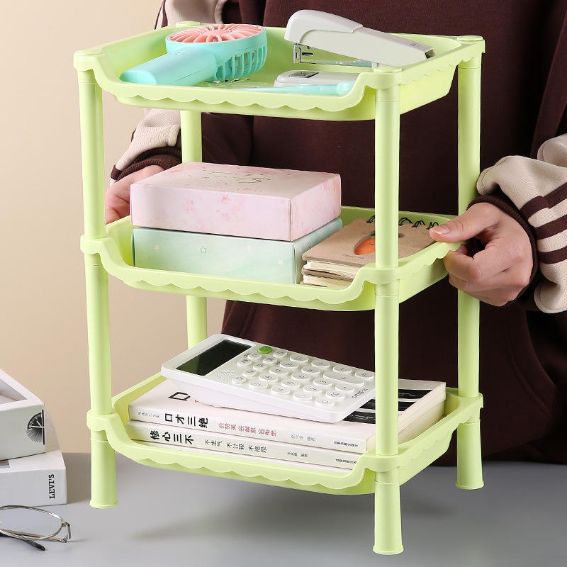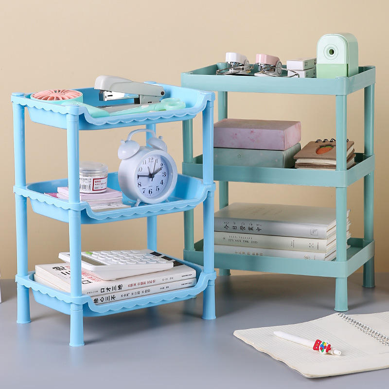 Desktop Three Tier Shelf Large Capacity Storage Organizer For Office And Cosmetic Items Standing Type Rectangle PP Material
