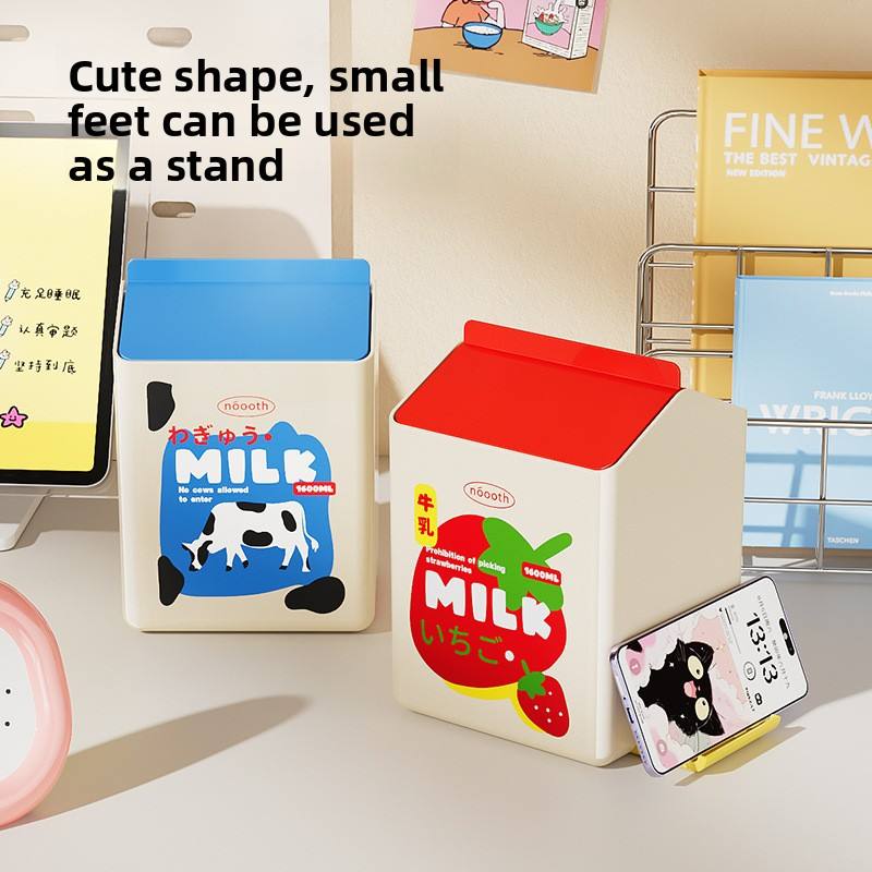 Desktop swing lid trash can mini coffee table with lid car bedroom countertop cute trash can with mobile phone holder