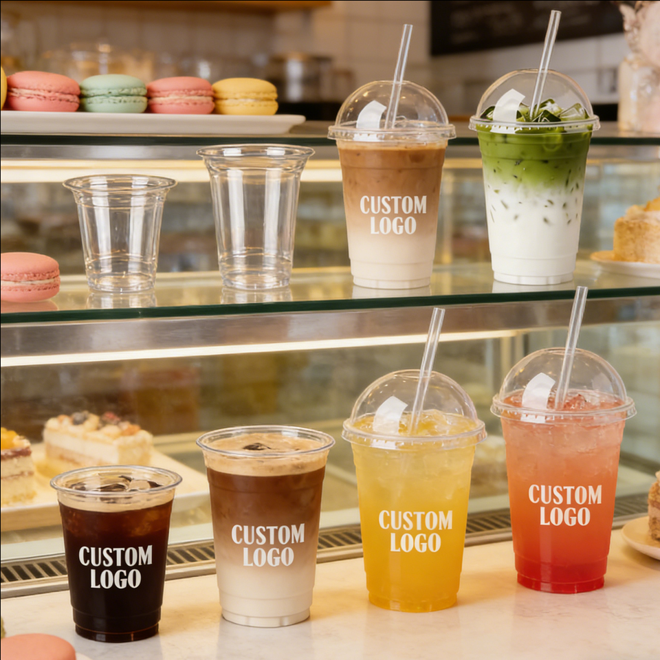 Dessert Plastic Cup Dome Lid Straw 500ml 90mm Diameter Starlight UV Printing Disposable Valentine's Day Party Drinking Container