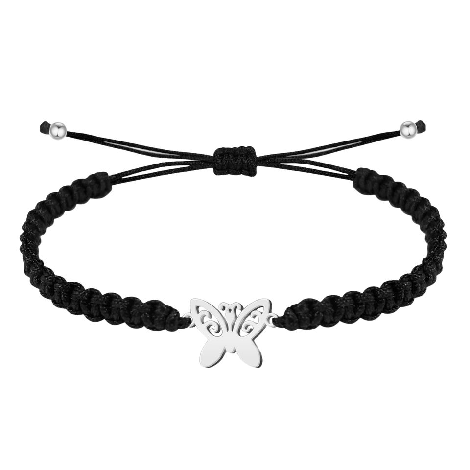 Destiny Thread Fine Charm Bracelet Black with Silver-Colored Stainless Steel Butterfly Provides Luck and Protection