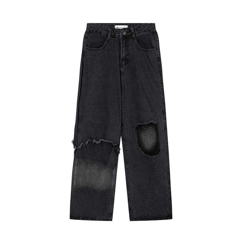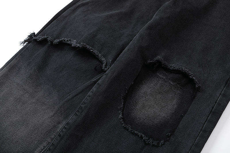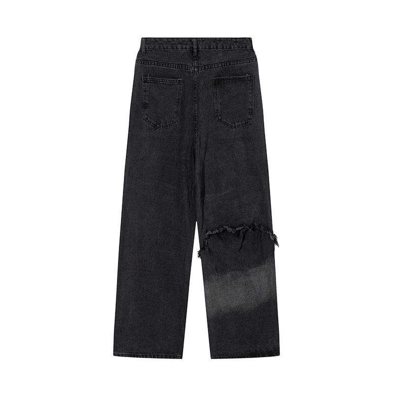 Destroyed Ripped Hole Baggy Denim Jeans Men Baggy Pant Fashion Flare Straight Denim Jeans Plus Size Wide Streetwear Jeans Men