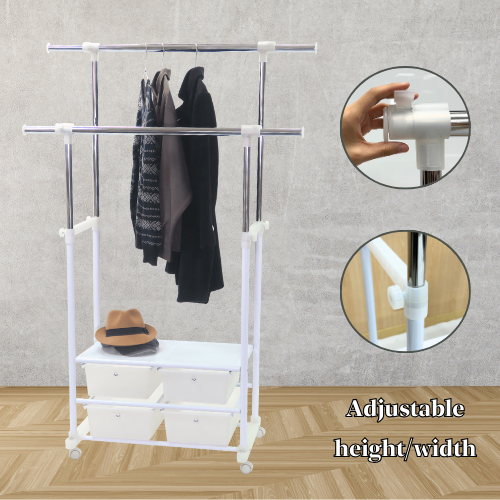 Product Name:DIY easy assemble 4-drawers double bar clothes rack with wheels