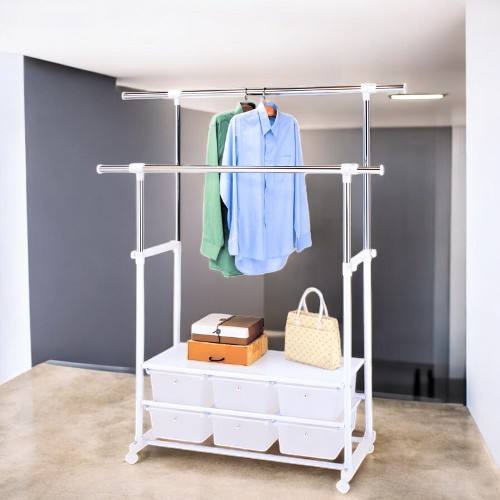 Product Name:double pole extendable multi-storage indoor rooling clothing rack