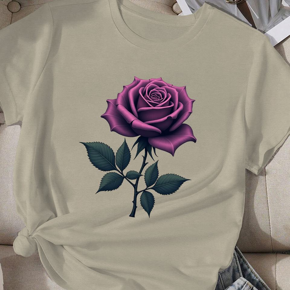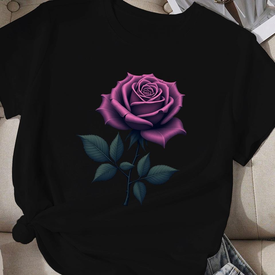 Detailed purple rose illustration women's comfit t-shirt