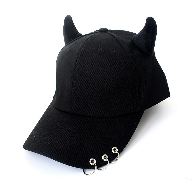 Devil Hat With Horn Adjust Sun Hat Street Style Iron Hip Hop Baseball Caps for Girl Women