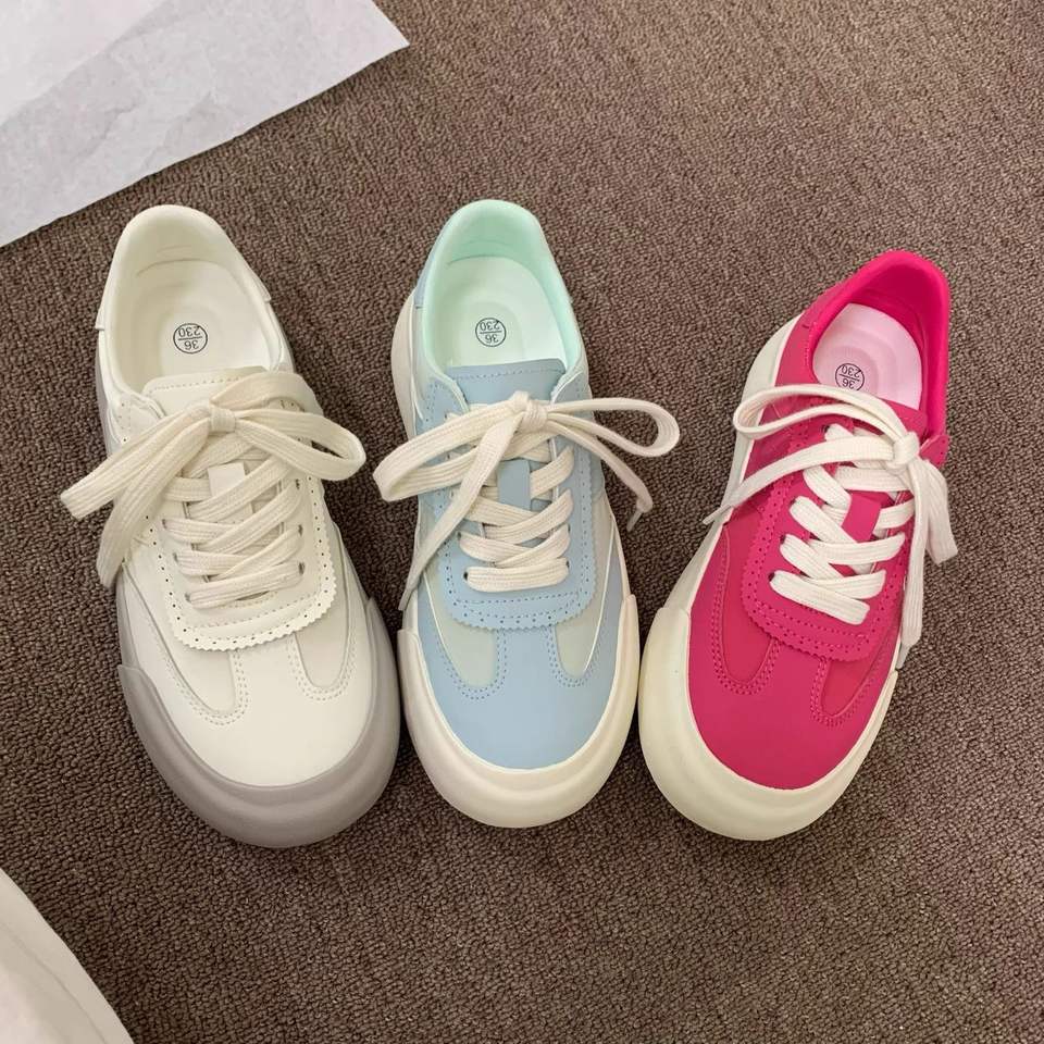 Dexun Women's Chic Korean Low-Top Canvas Sneakers Breathable Summer White Shoes with Thick-Sole & Rubber Insole