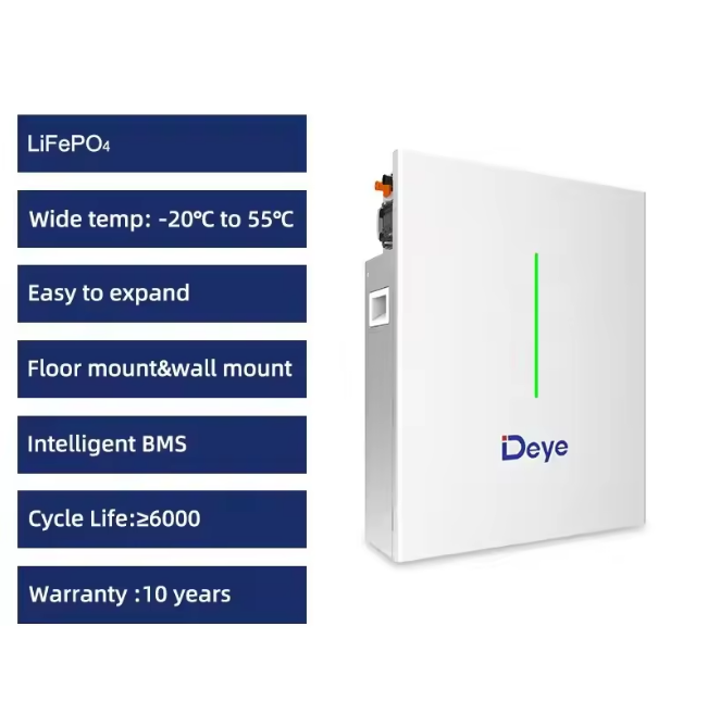 Deye RW-F10.2 51.2V 200Ah 10kw Energy Storage Intelligent BMS LiFePO4 Battery Wall-Mounted IP54 Protection Grid/Hybrid Grid Home