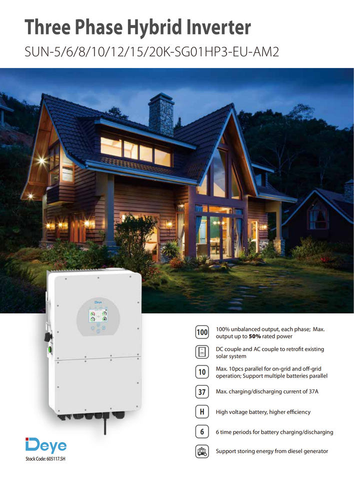 Deye Three Phase SUN-5/6/8/10/12/15/20/25K-SG01HP3-EU-AM2 5KW 6KW 8KW 10KW 15KW 20KW 25KW Hybrid Solar Inverter