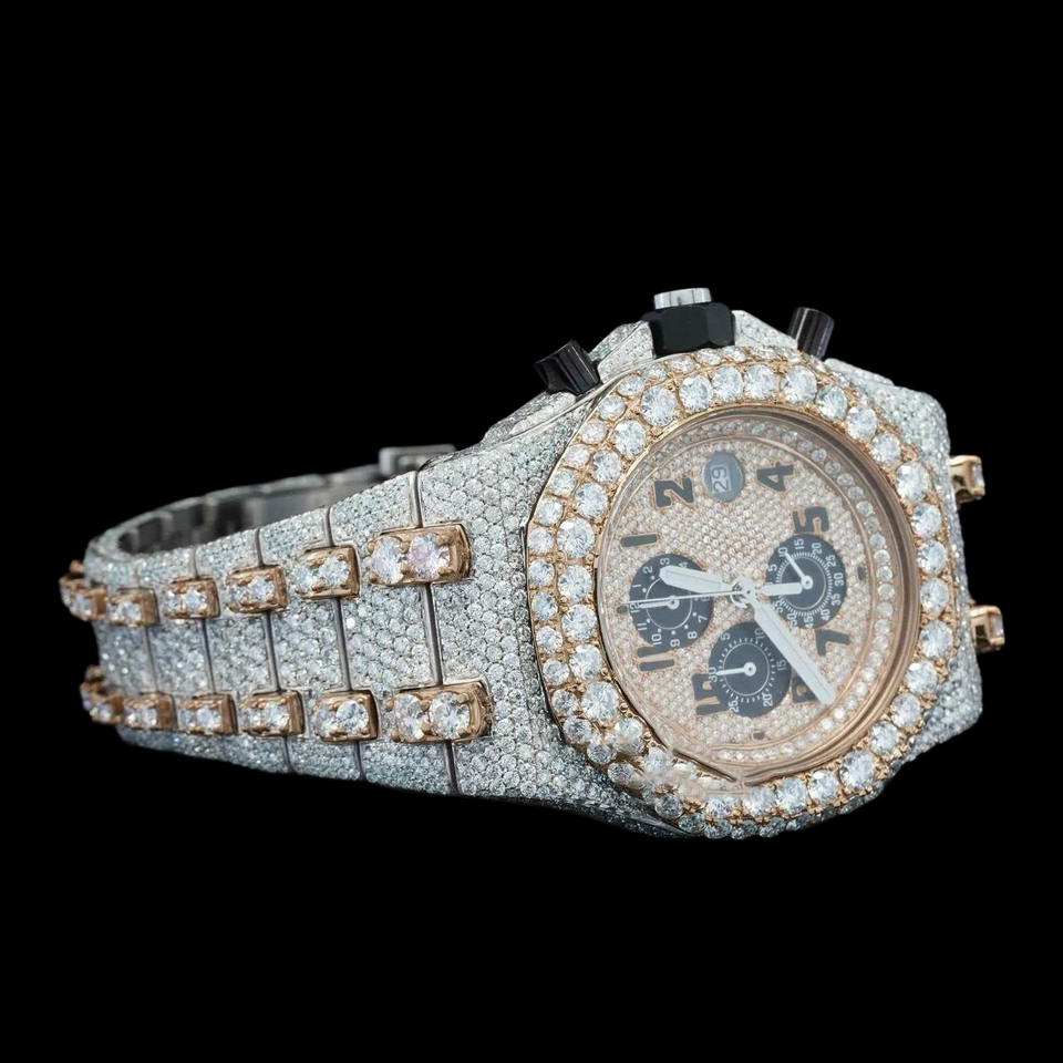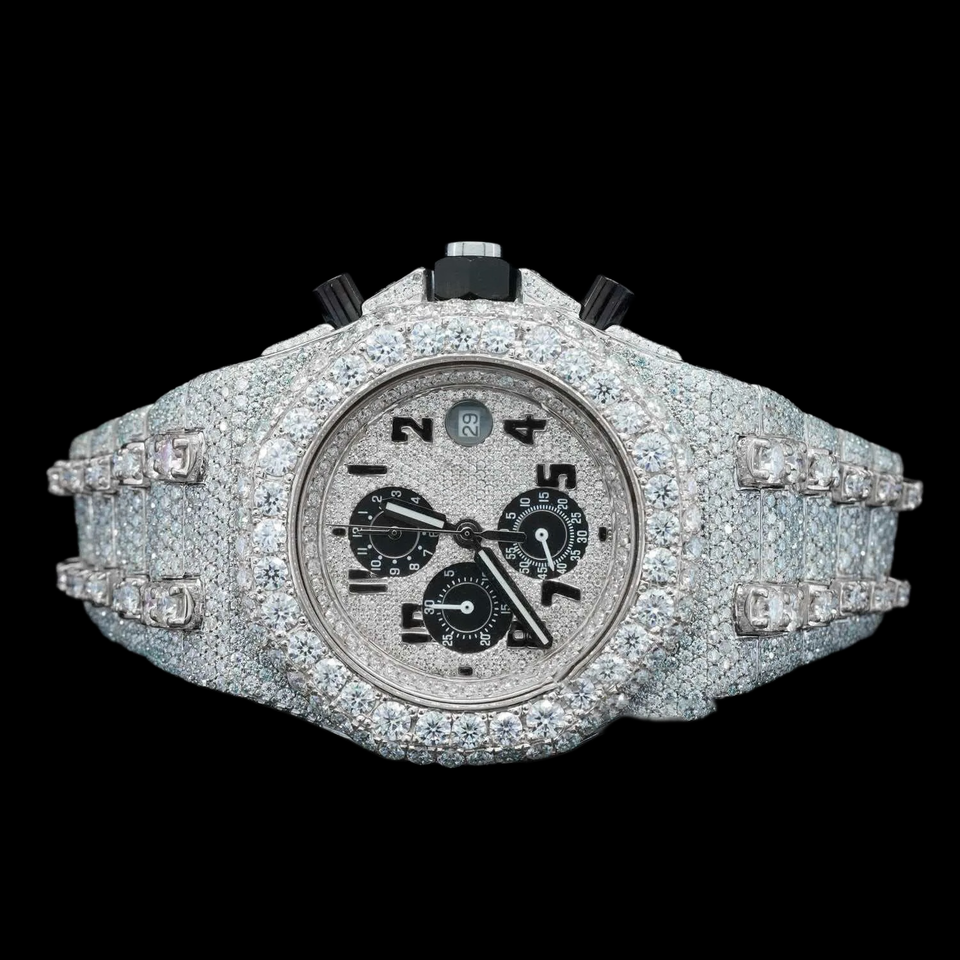 DiaDream Gems & Jewel Custom Chrono Full Iced Out Round Moissanite Diamond Classic Date Dial Features Diamond Watch For Man Gift