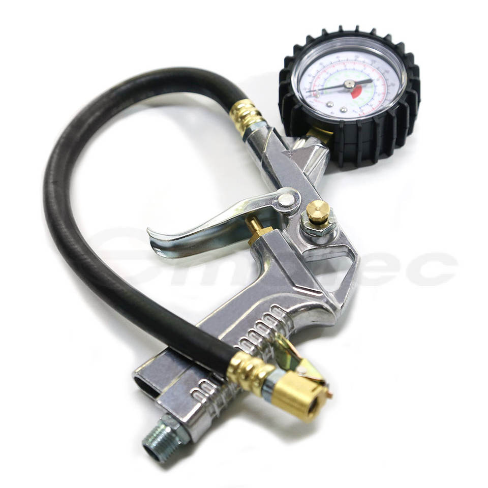 Dial Tire Aluminum Inflating Inflator Deflator Metal Gun Pressure Gauge Rubber Hose