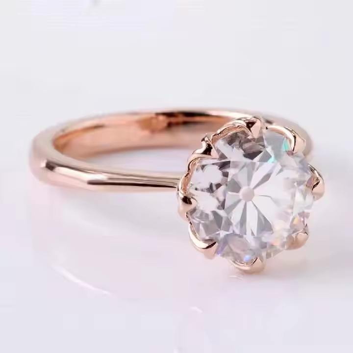 Diamond 14K Solid Gold Old European Round Cut VS1 Lab Grown Engagement Ring Ring Cathedral Tulip Setting Solitaire Promise Ring