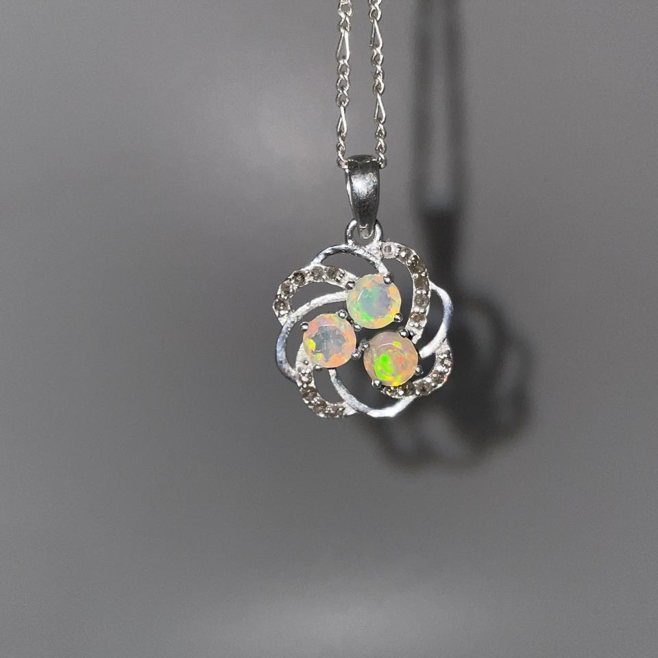 Diamond 925 Sterling Silver Natural Opal Pendant Vintage Cut Faceted Gemstone Multi Fire Ethiopian Opal Crystal Children