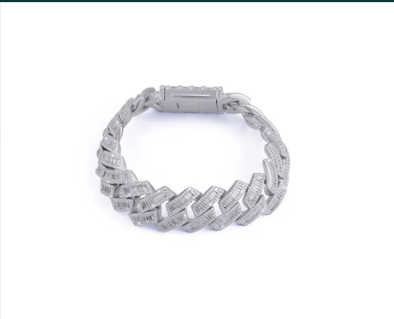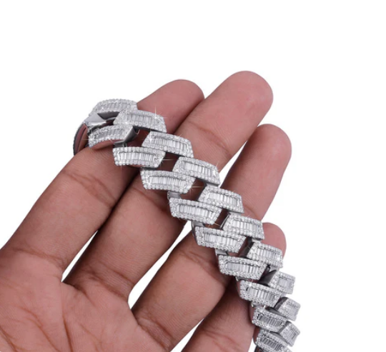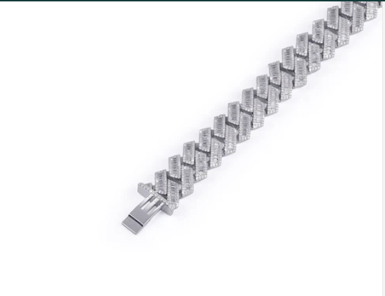 Diamond Bracelet: Sterling Silver Baguette Cut Moissanite Diamond Cuban Bracelet