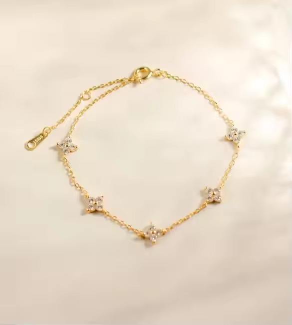 Crystal Diamond Charm Bracelet Mini Flower bracelet For Women Delicate Wedding bracelet