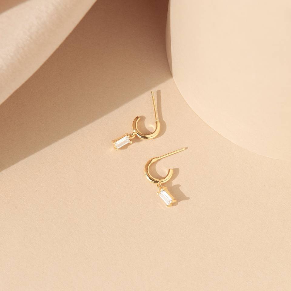 Diamond Charm Huggie Hoop Earrings Trending Baguette Hoops Perfect Look Bridesmaids Gifts, Lover, Her Wear Earrings