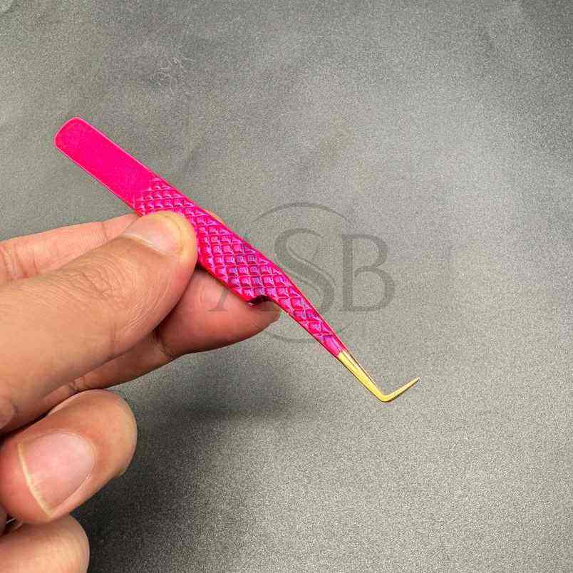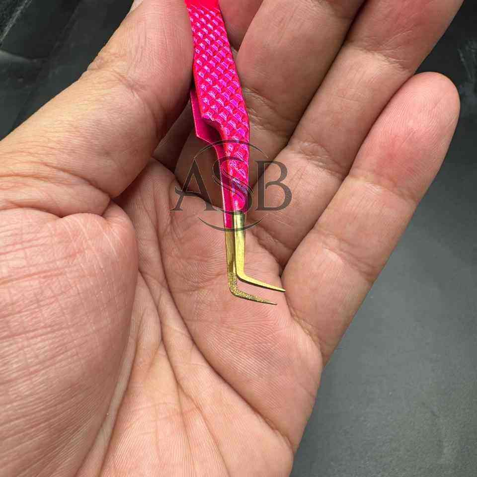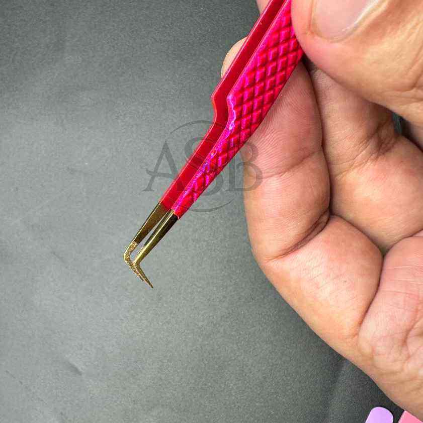 Diamond Dusted Tip Eyelash Extension Tweezers Sustainable Stainless Steel Custom Logo Pointed 90 Degree Volume Tweezer