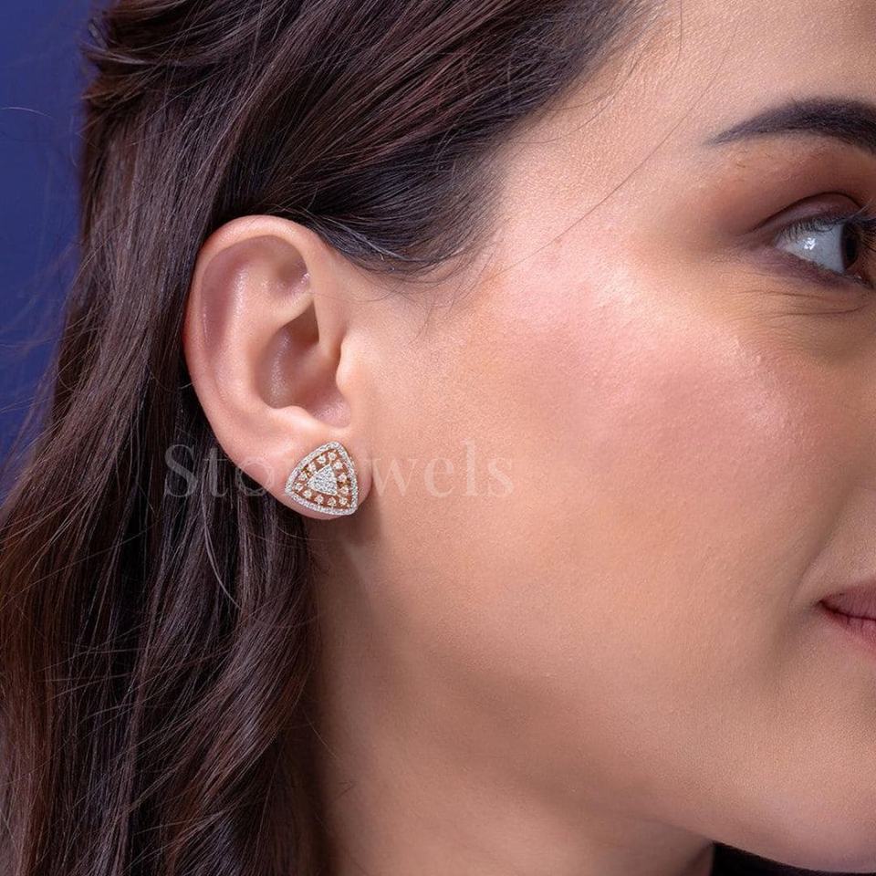 Diamond Earrings from India Moissanite Lab-Grown & Natural Diamond 925 Sterling Silver Triangle Stud Modern Minimal Jewelry
