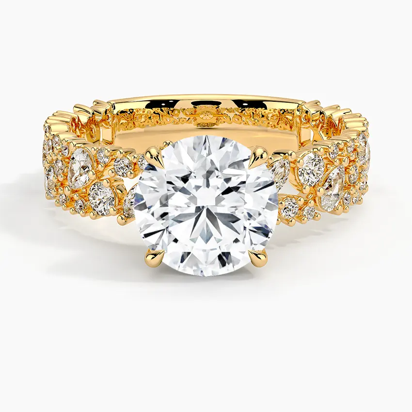 Stainless Steel Moissanite Engagement Ring Halo and Hidden Halo Design for Bridal Look