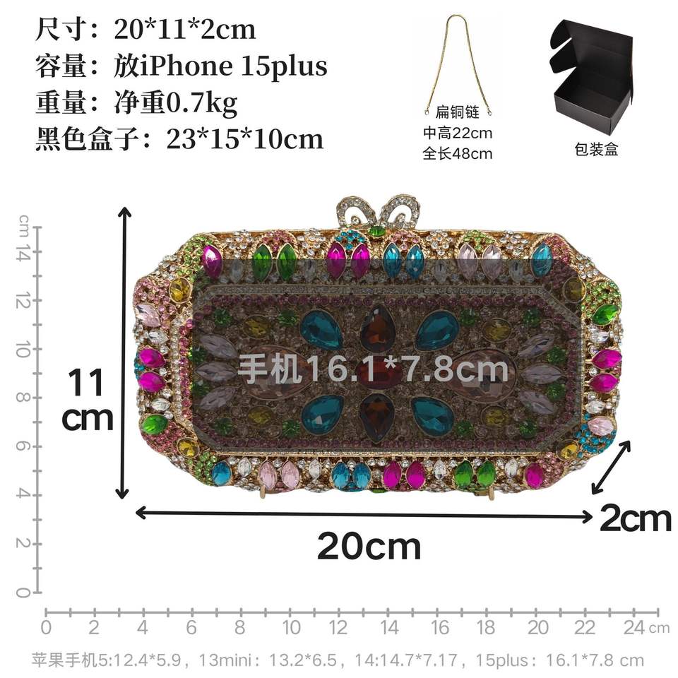 Diamond Evening Bag Hollowed-out Metal Multi-color Phone Clutch Chain Crossbody Evening Bag for Women Party Banquet