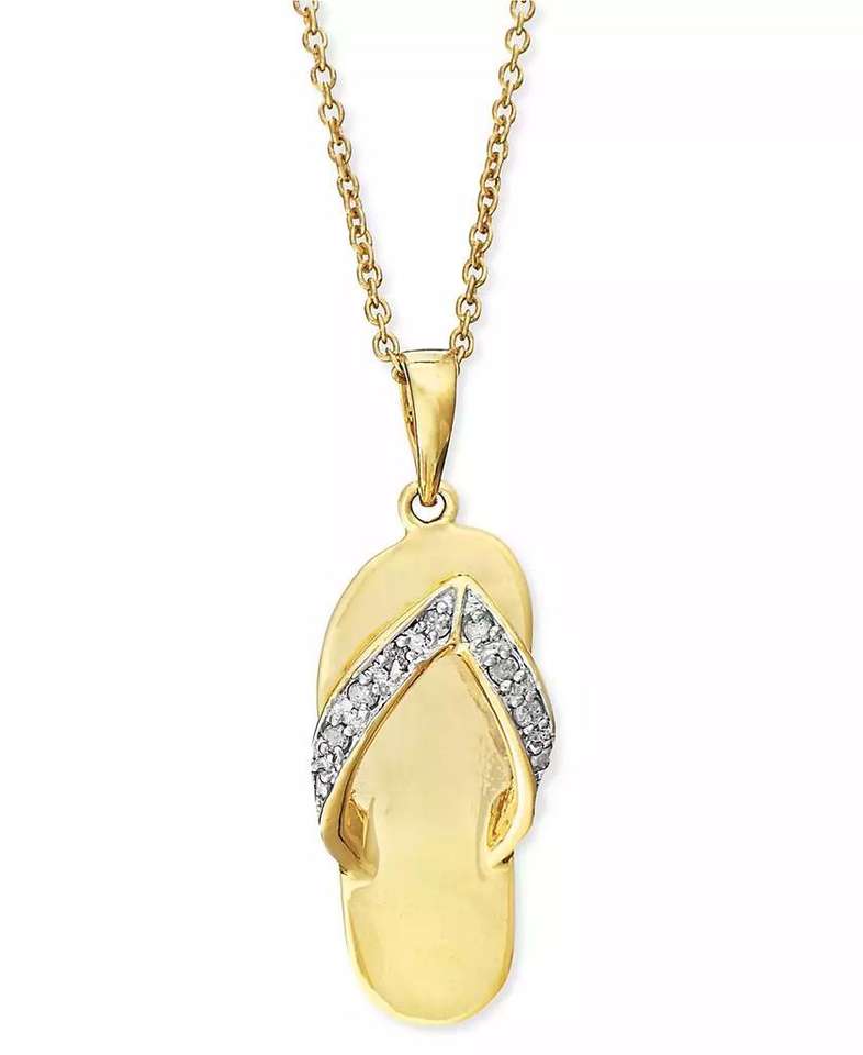 Diamond Flip-Flop Pendant Necklace in 18k Gold over Sterling Silver (1/10 ct. t.w.) | Macy's