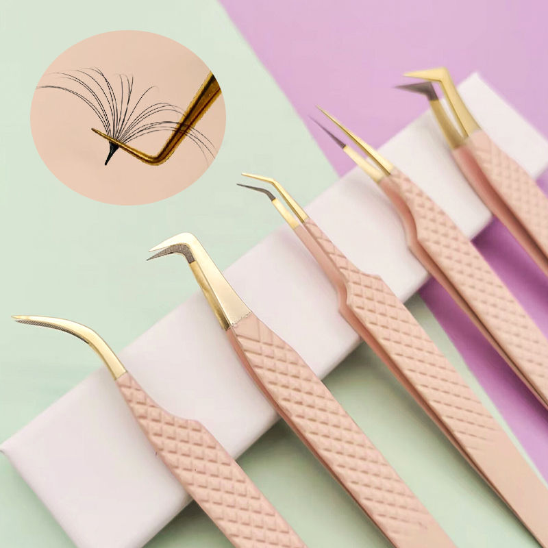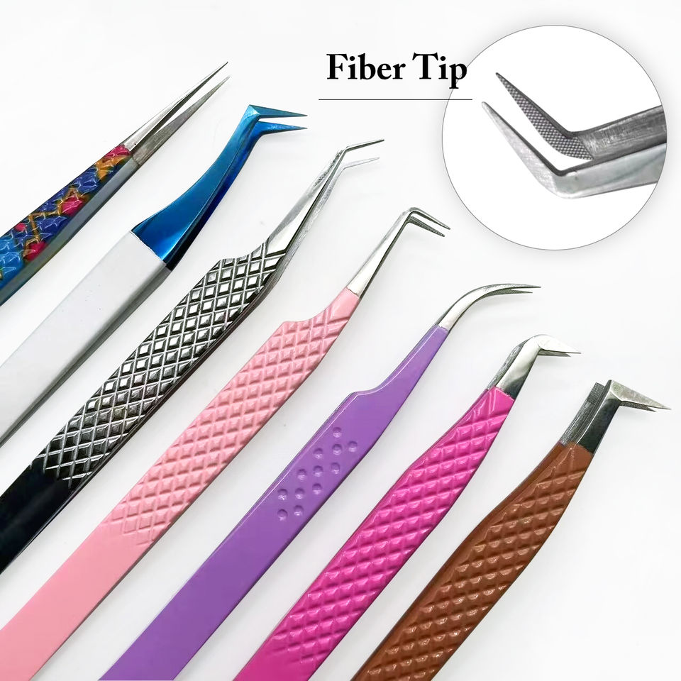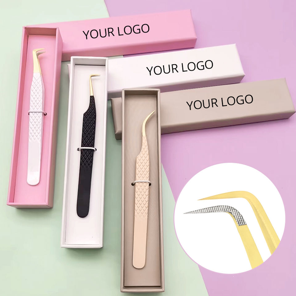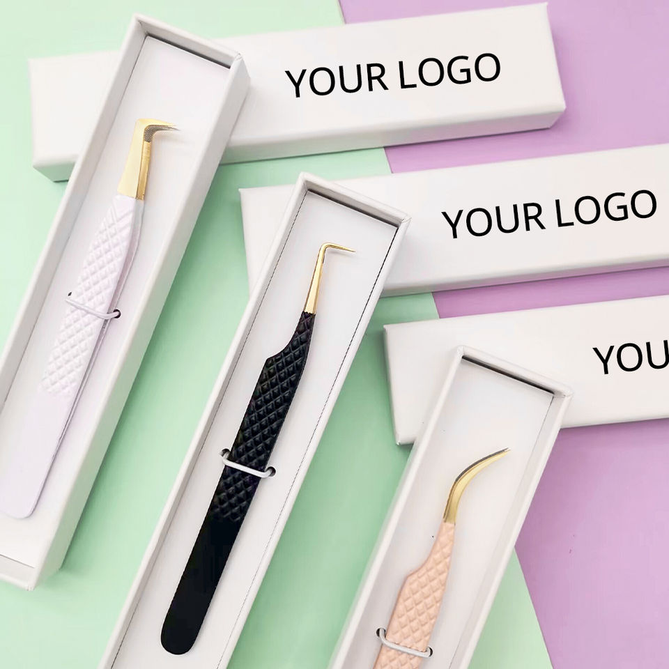 Diamond Grip Eyelash Tweezers Pink Box white Box Packing Isolation Private Label Fiber Tip Volume Lash Tweezers