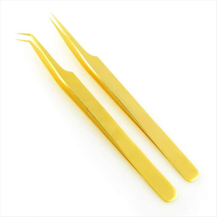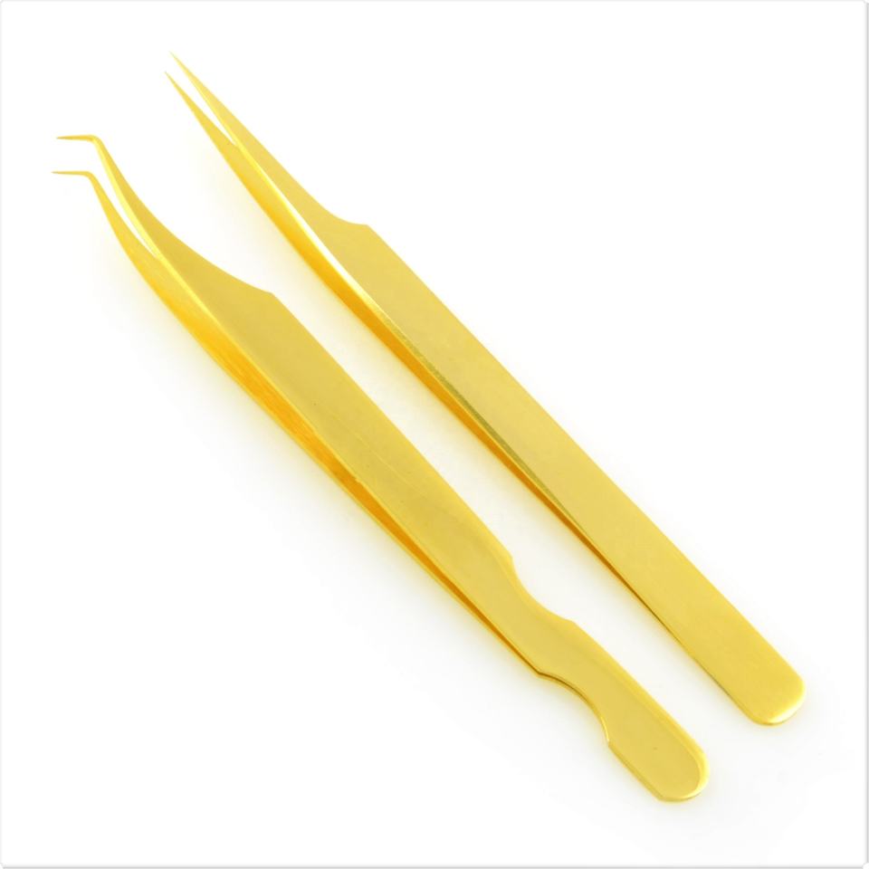 Diamond Grip Gold Eyelash Extension Tweezers 45 Degree Stainless Steel Sharp Fine Point Perfect Grip for False Eyelashes