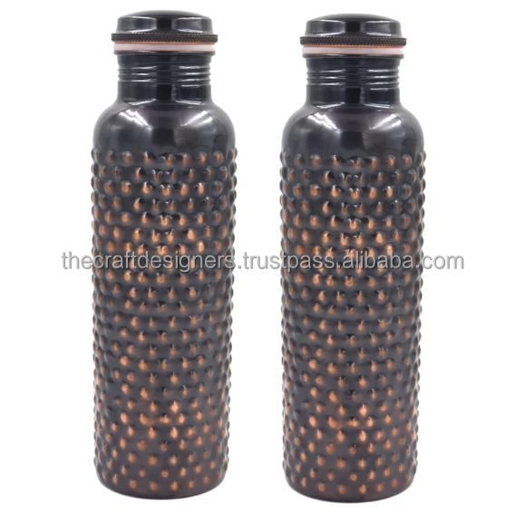 Diamond Hammered Copper Bottle Certified Copper Ayurvedic Water Bottle Available in Two Famous Black White Tones