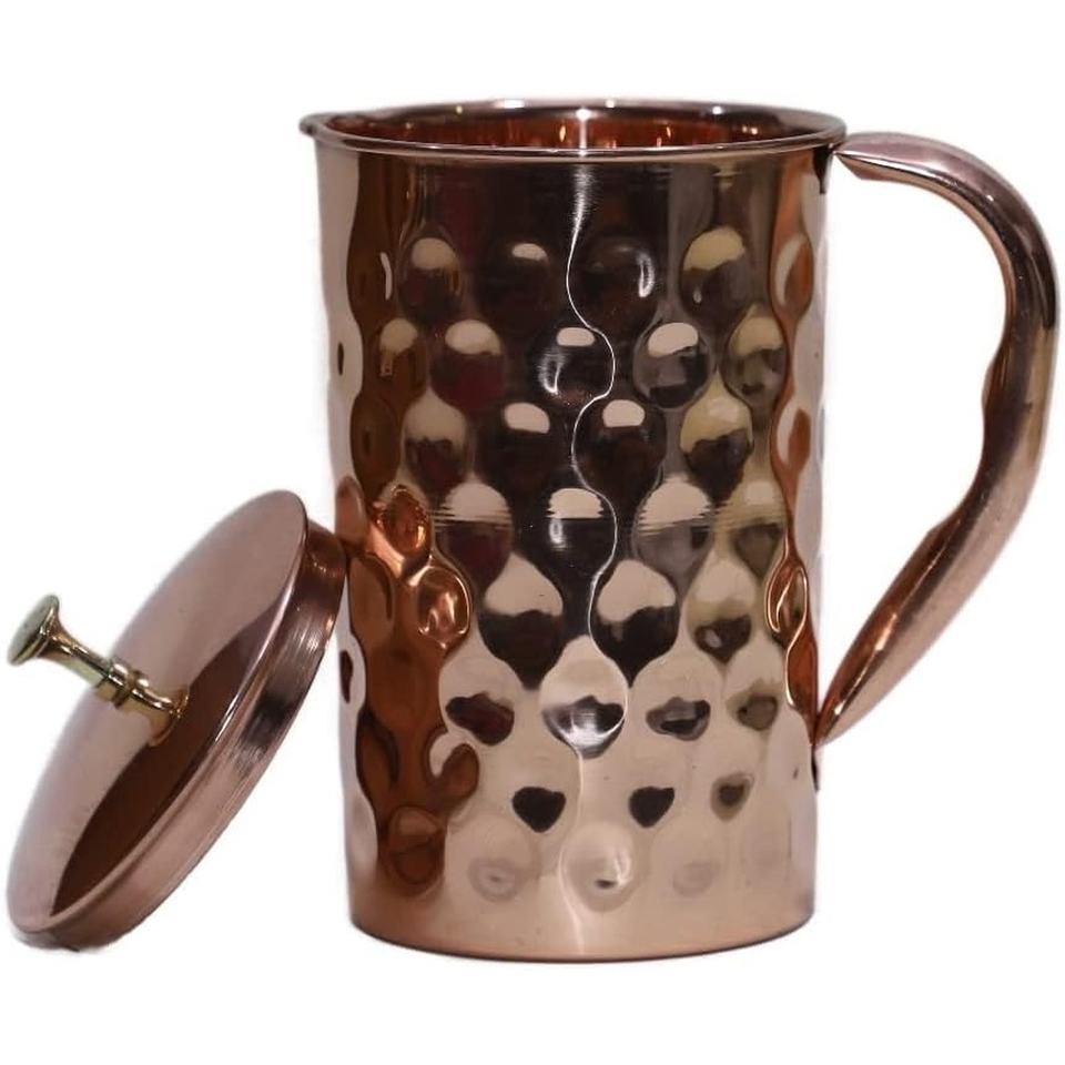 Diamond Hammered Design Copper Water Pitcher Polished Metal Jug with Handle for Ayurveda Doctor