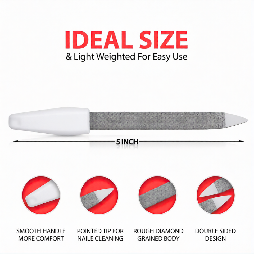 Diamond Nail File 5 Inch Double Sided Metal Nail File Buffer Stainless Steel Professional Nail Shaping Manicure Tool