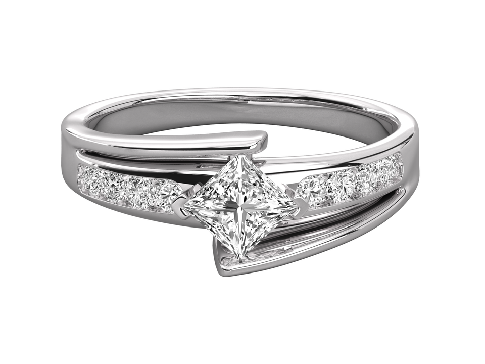 Diamond Princess Cut Engagement Ring 14K Gold Plated IGI Certified Classic Adjustable Wedding Ring for Women Men