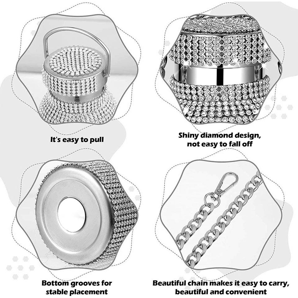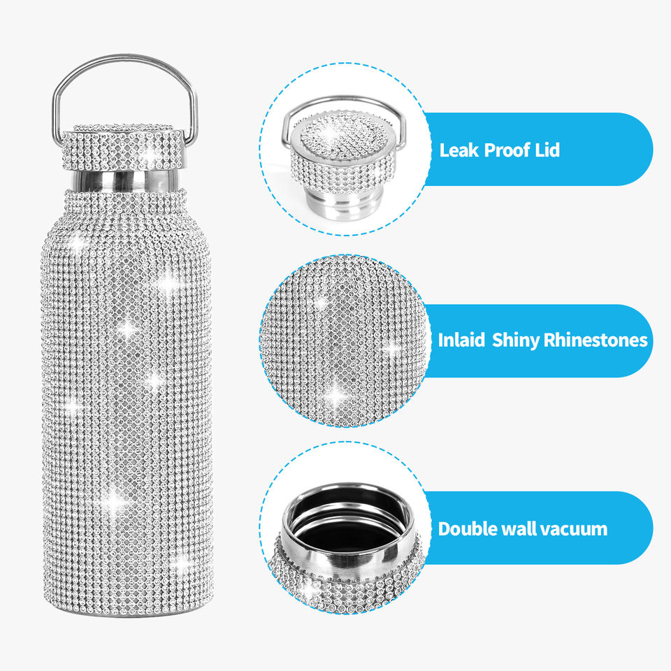 Diamond Rhinestone Stainless Steel 500ml Leak-Proof Vacuum Flask with Handle and Lid