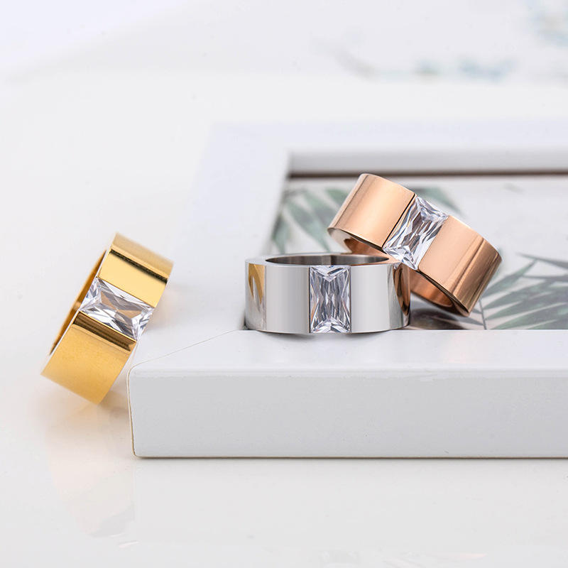 Diamond Rings Titanium Steel Princess Cut Geometric Banquet Jewelry Men's Ring 18K Gold Plated XYR0036