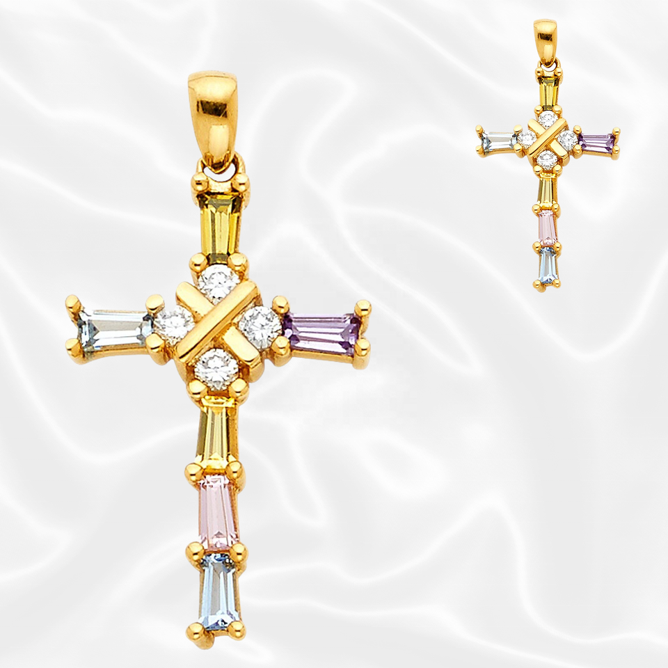 Diamond Studded Gold Plated Cross Pendant New Fashionable Jewelry for Christians Customizable for Women Girls Men Unisex