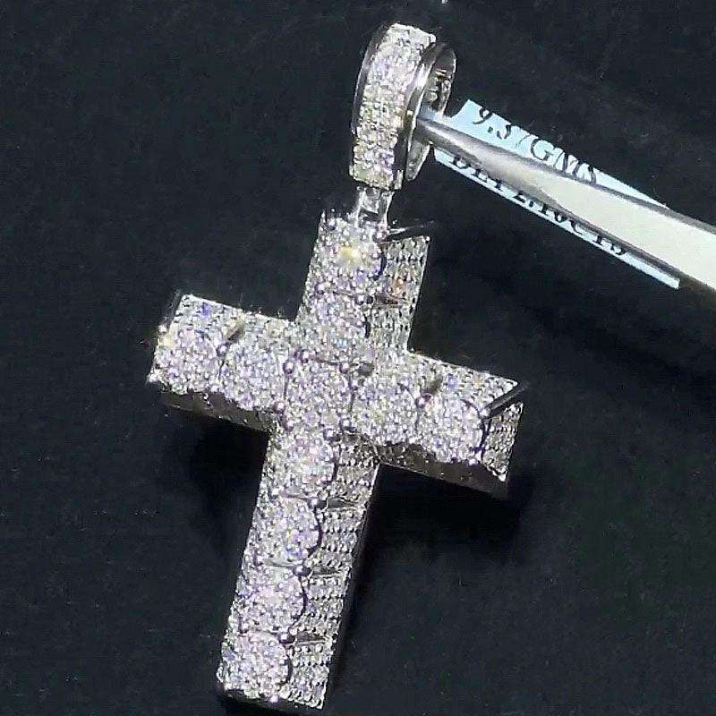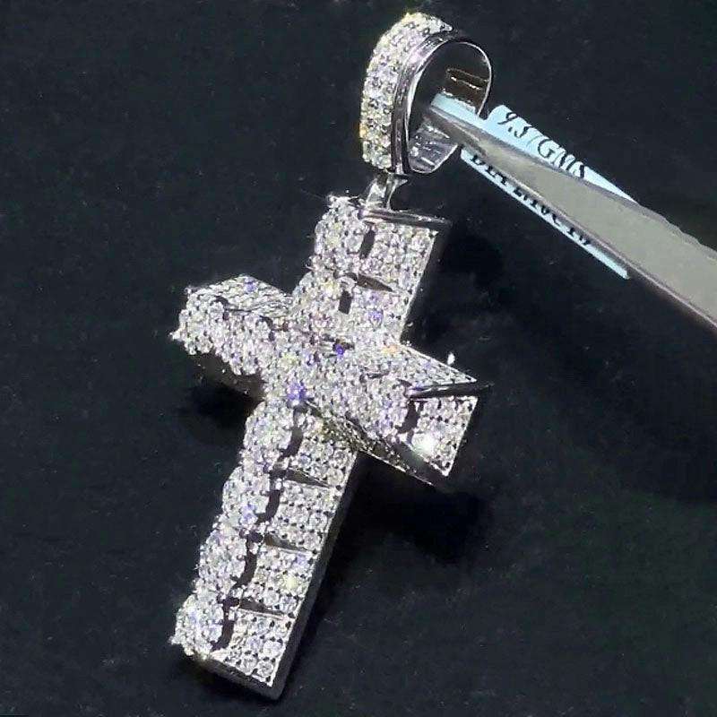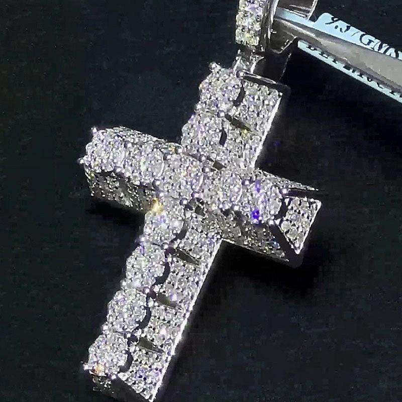 Customized 925 Silver Moissanite Cross Pendant Necklace Hip Hop Style Iced Baguette Cut Diamond Tester Unique Hip Hop Accessory