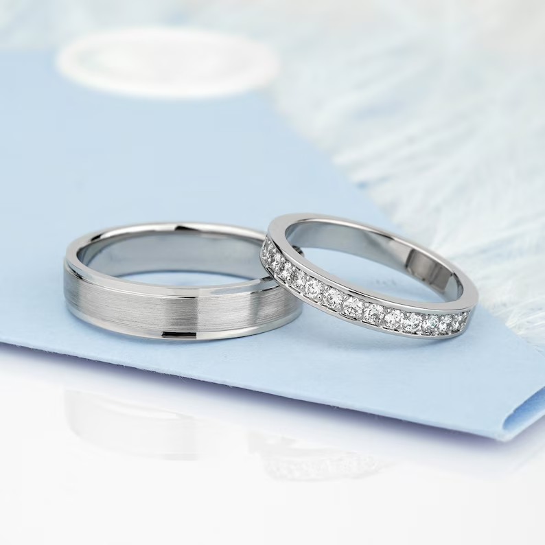 Stainless Steel Moissanite Wedding Bands Set 18K Gold Plated Unisex Rings for Perfect Wedding Day