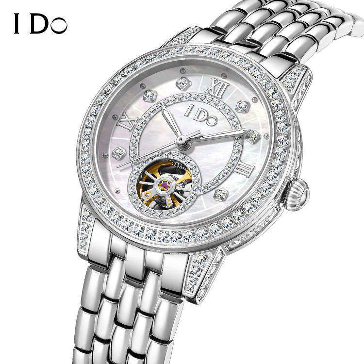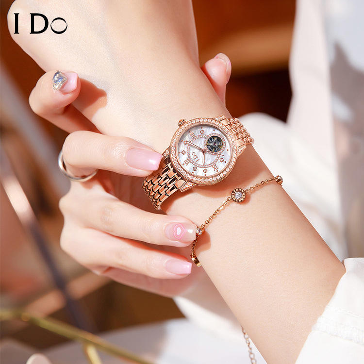 Diamond automatic mechanical waterproof skeleton women's watch wholesale