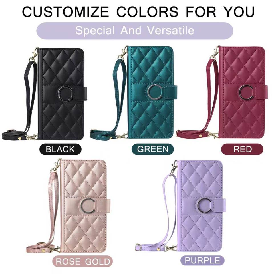 Diamond-patterned Leather Flip Phone case with Lanyard, Samsung S20 21 22 23 24 Plus A26 40 50 70 Note 10 20 S24ultra More Model