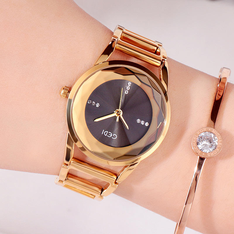 Diamond-set minimalist women's watch with stainless steel strap waterproof fashion quartz watch