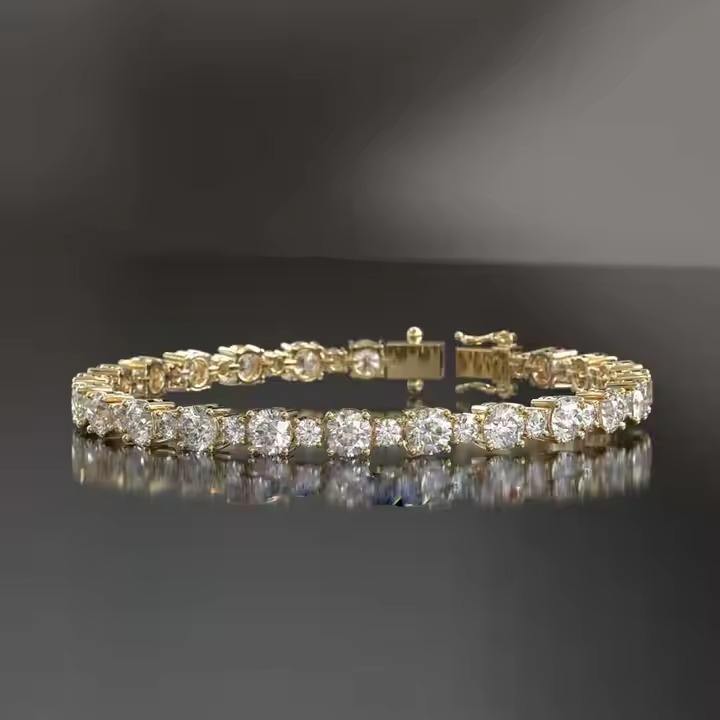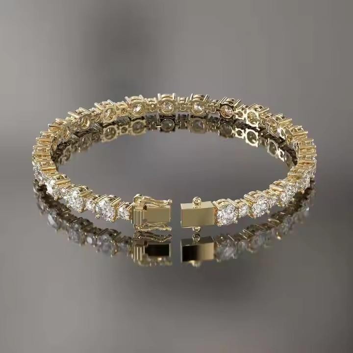 Diamonds Tennis Bracelet Solid 14K Yellow Gold Handmade Wedding FOR HER