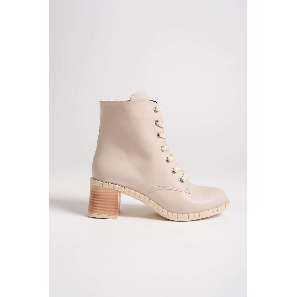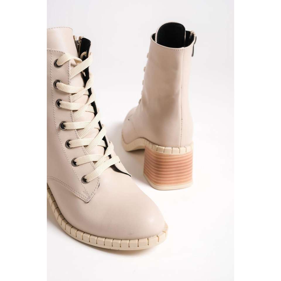 Diana Women's Cream Heeled Boots with Lace-up Zippered Orthopedic Sole Water and Cold Resistant Skin KT Series