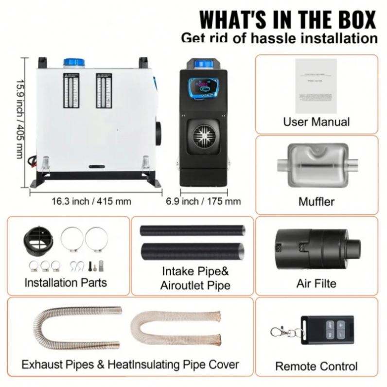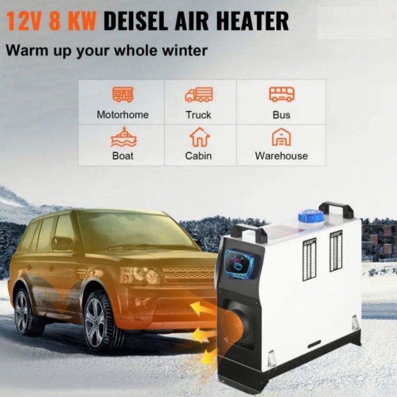 Diesel Air Heater All in One, One Air Outlet, 8KW 12V With Red LCD Switch, Remote Control for Car, RV Truck, Boat, Caravans