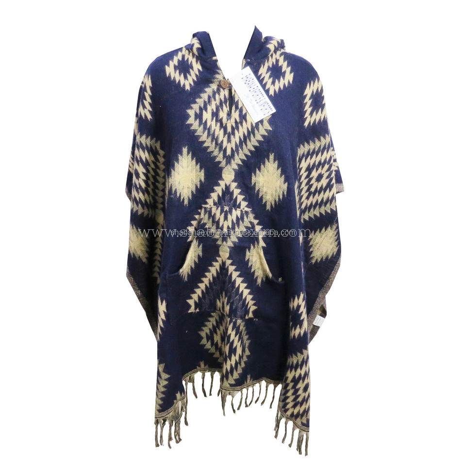 Different Color Wool Poncho for Men Luxurious Acrylic Poncho for Effortless Style Geometric Print Hooded Poncho Easy to Wear