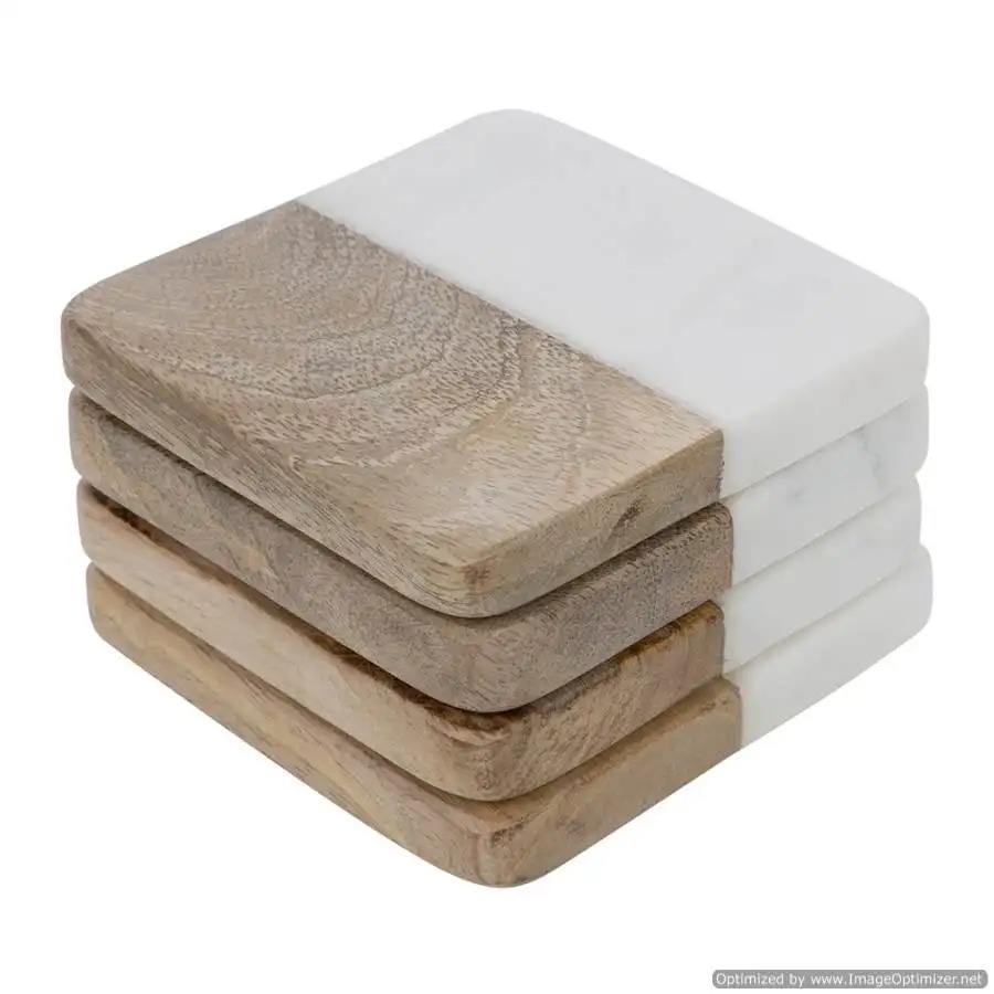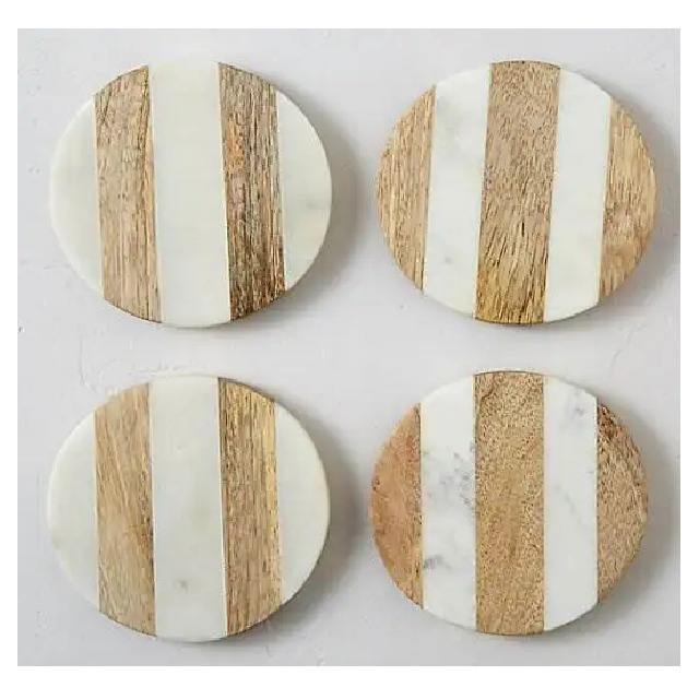 Different Wood Joint Marble Coaster Handmade Eco-Friendly Reusable Table Top High Quality Mats & Pads Export Quality Coaster