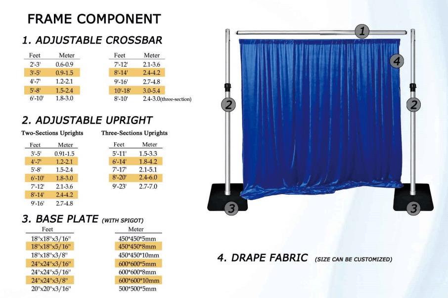 Different kinds of pipe and drape for Wedding Curtain Aluminum Alloy Portable Upright Adjustable Stand