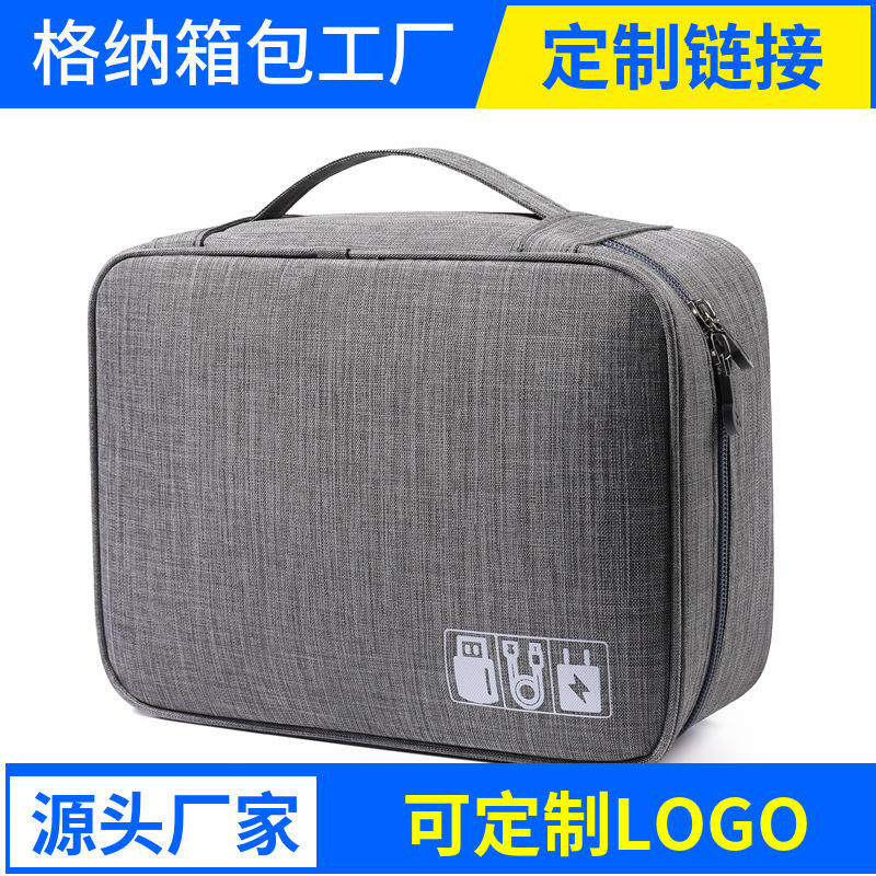 Digital Bag Cube Polyester Storage Case For Mobile Phone And Cables Gray