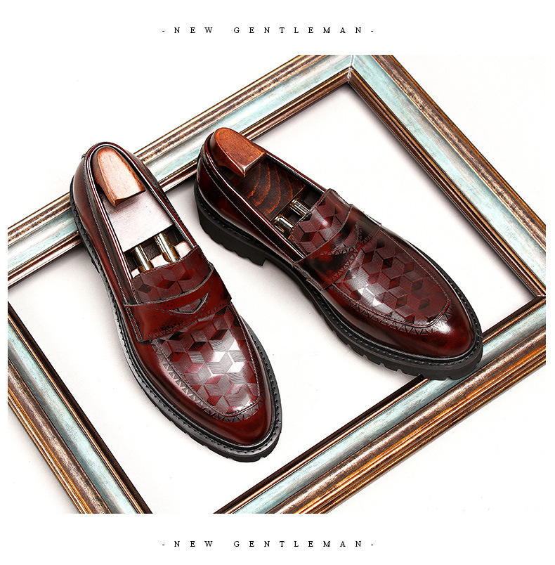 Digital Casual Leather Thick Sole Increase Height Round Toe Men Genuine Leather Shoes