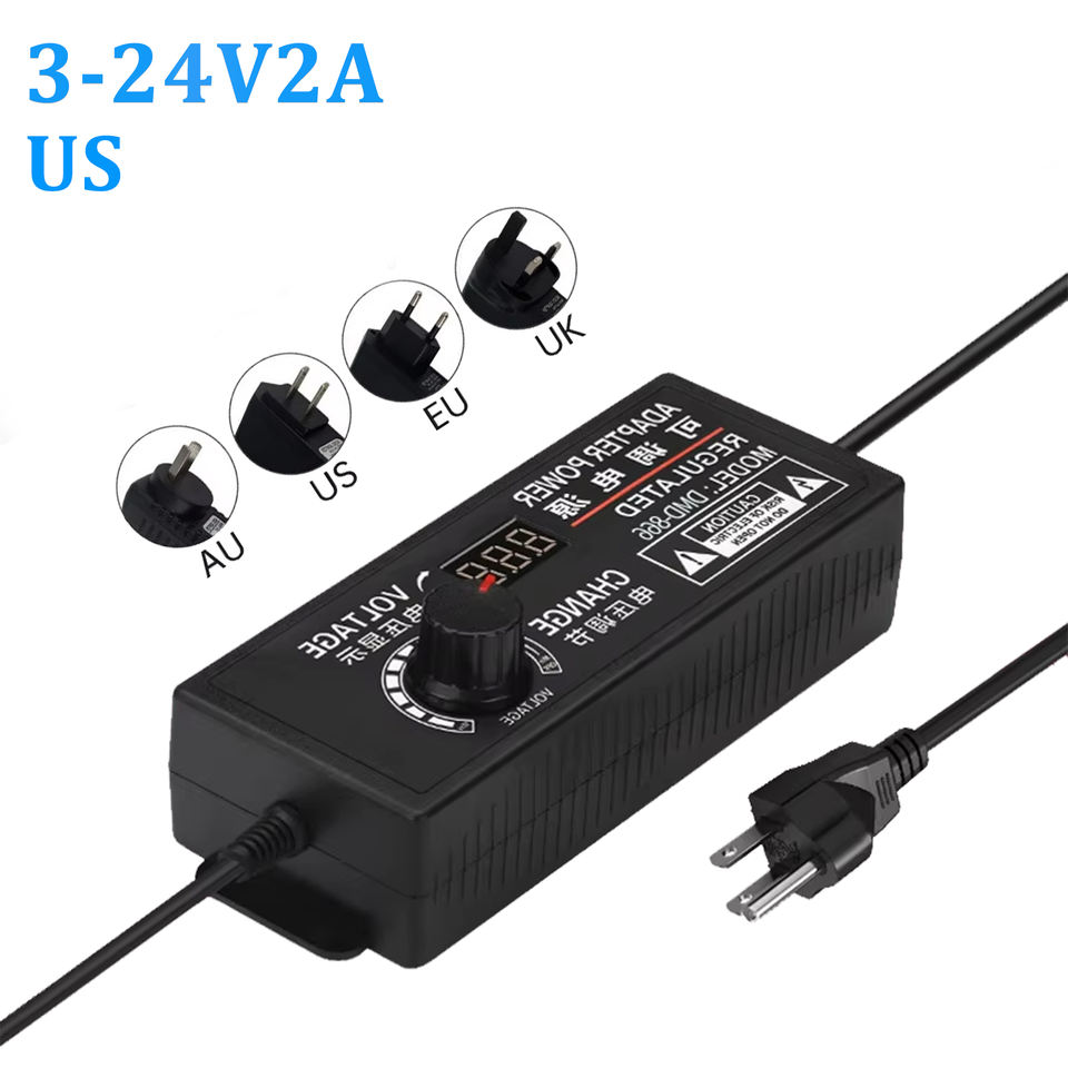 Digital Display 48W Adjustable Power Adapter 3V to 24V 2A US Plug for LED Motor Speed Pump