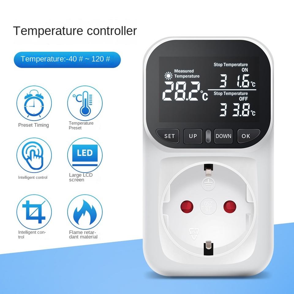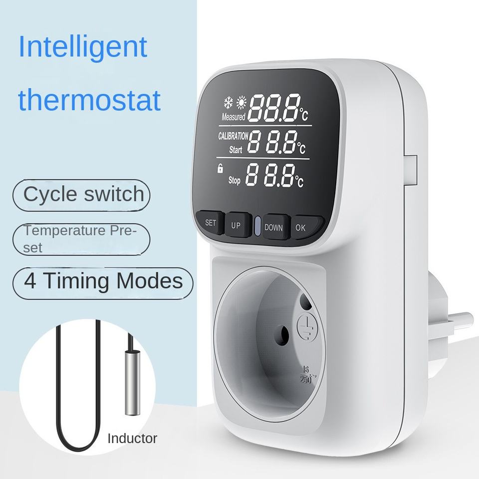 Digital LCD Screen Thermostat Plug Outlet Socket LV Temperature Controller Timer Mode for Heating/Cooling Temperature Switch