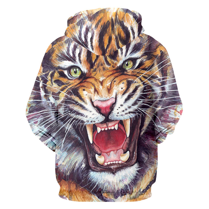 Digital Printing Sublimation 3D Full Print Animal Tiger Hoodie Mens Hip Hop Streetwear Drop-ship Apparel