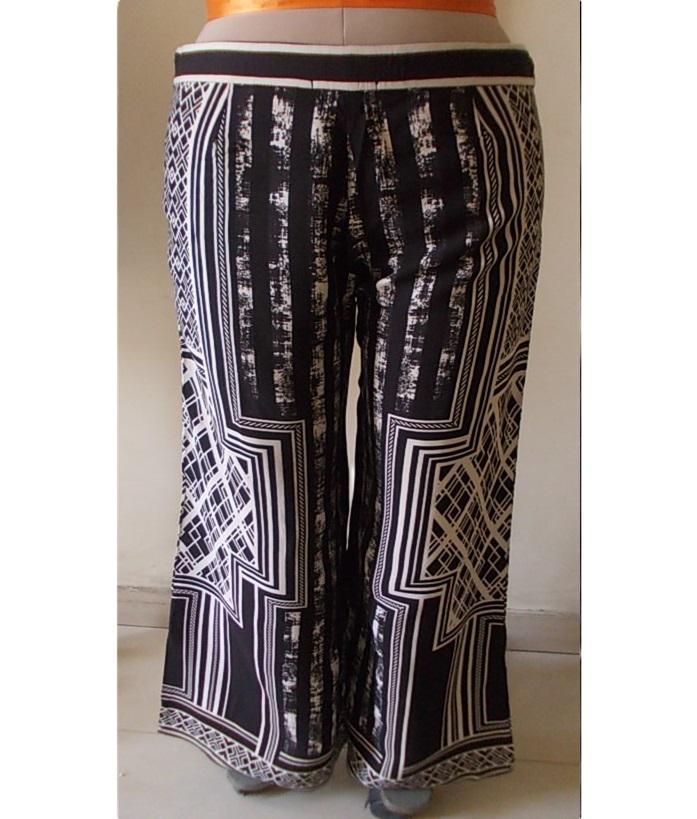 Digitally Printed Black and White Waist Elasticated Casual Light Weight Stylish Polyester Trouser for Young Ladies
